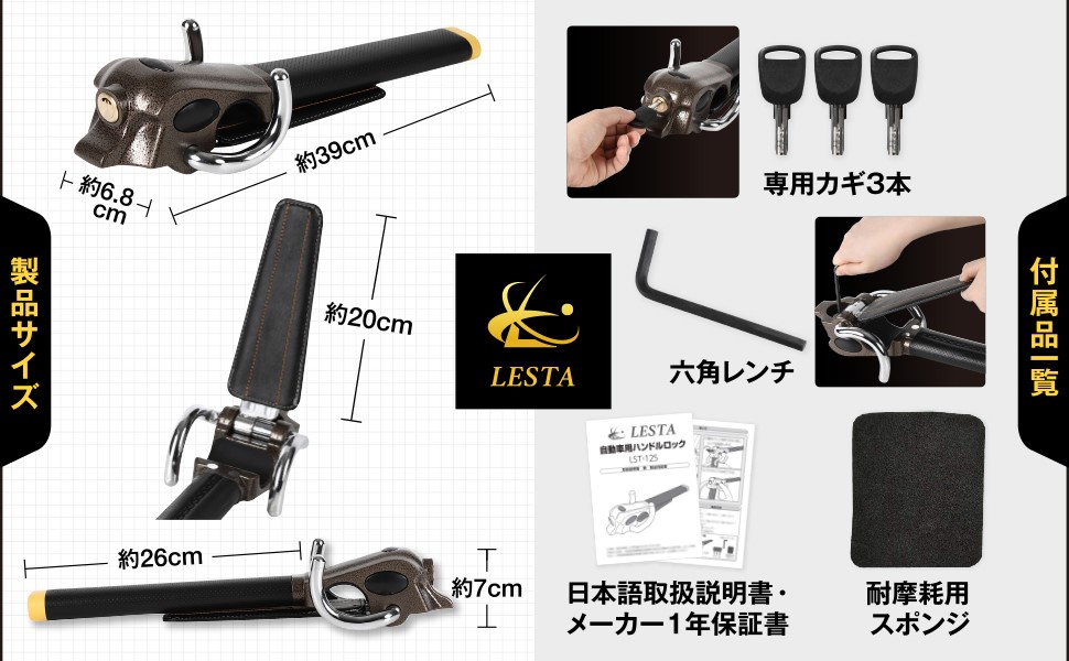 LESTAハンドルロック LST12S:愛車を”絶対”に守り抜く、最強の二重防犯ステアリングロック